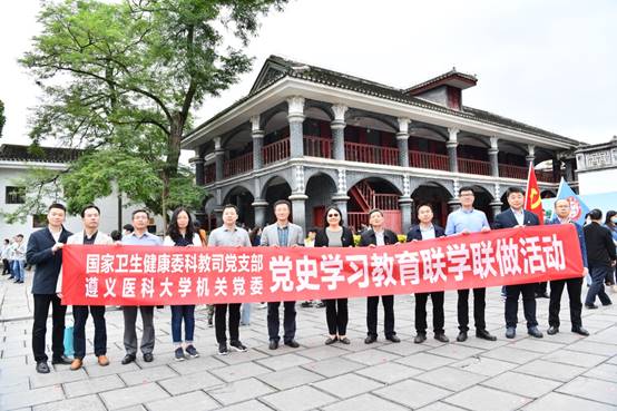 5月26日下午13:00,国家卫健委科教司党支部与我校机关党委开展党史学习教育联学联做主题党日活动。国家卫健委科教司副司长陈昕煜一行与我校机关党委党员来到遵义会议会址进行党史学习。学校党委副书记蔡善君,学校党委委员、附属医院党委书记唐自力,省卫生健康委科教处处长李梦蓉等陪同。