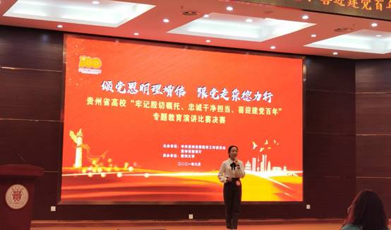 6月21日,由省委教育工委、省教育厅主办的全省“牢记殷切嘱托、忠诚干净担当、喜迎建党百年”演讲比赛决赛在贵州大学举行。