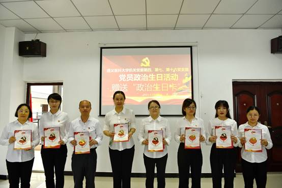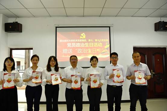 政治生日会上,全体党员集体诵读了习近平《论中国共产党历史》中“始终做到初心如磐、使命在肩”文章及习近平总书记在党史学习教育动员会上的重要讲话、习近平总书记视察贵州重要讲话精神。党员代表以配乐诗表演《百年芳华》,抒发了家国情怀和对党的热爱。学校党委委员、党委宣传部部长李均,学生资助管理中心主任陈仁建,校团委书记柏正华,学生工作部(处)谢国秀等6名党员代表分享了自己的入党初心。在“我用三行诗感恩党”环节,全体党员用笔尖回顾了党的光辉历程和丰功伟绩。随后,各支部书记为支部党员赠送政治生日贺卡,机关党委第七党支部书记杨艳带领全体党员重温入党誓词,活动在集体大合唱《没有共产党就没有新中国》的歌声中落下帷幕。