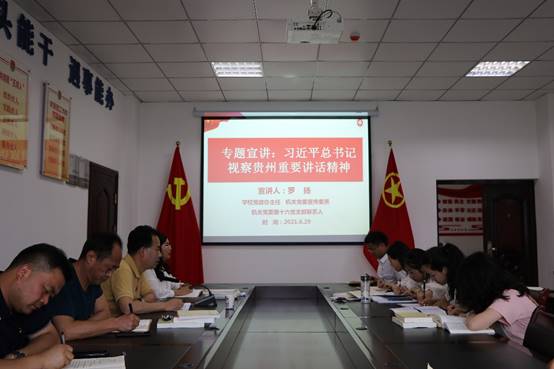 6月29日下午,机关党委委员、党委学校办公室主任罗扬在学生中心楼406会议室,为所联系的机关党委第十六党支部专题宣讲习近平总书记视察贵州重要讲话精神。支部党员和入党积极分子参加宣讲会。