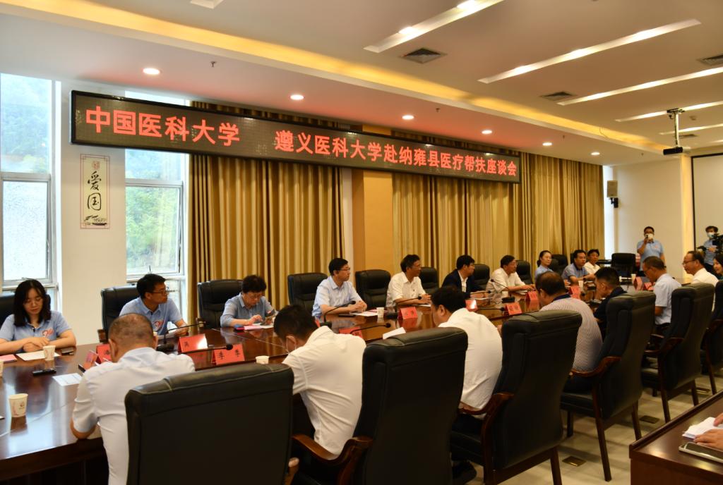 义诊过程中,纳雍县人民政府组织召开了座谈会。毕节市人民政府副市长丹彤,毕节市卫生健康局副局长路敏,纳雍县人民政府副县长林炼深,纳雍县卫生健康局、县人防指挥信息保障中心、县人民医院、县中医院相关负责人参加座谈会。座谈会上,校长刘建国对中国医科大学、毕节市人民政府长期以来的帮助和支持表示感谢,介绍了近年来我校改革发展取得的成就。他对此次大型义诊活动给予充分肯定,希望继续与中国医科大学深化合作,共同为毕节市、为贵州医疗卫生事业和人民健康服务。中国医科大学党委副书记闫灵均表示,通过此次义诊,医疗队员和当地医生将建立联系,这将为今后医疗帮扶奠定基础,同时中国医科大学将在继续教育和在职教育方面探索帮扶措施,为提升毕节市医疗水平做出贡献。