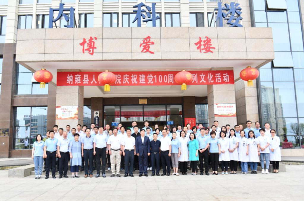 7月4日上午8:00,我校与中国医科大学组成专家团队近40人在纳雍县人民医院开展义诊,受到当地群众的欢迎。义诊期间,校长刘建国与中国医科大学党委副书记闫灵均、副校长王平一行慰问了医疗队员,并在纳雍县人民医院院长王瑞浜陪同下调研了该院呼吸与危重症医学科、肿瘤科、中西医结合科、儿科等科室建设情况。