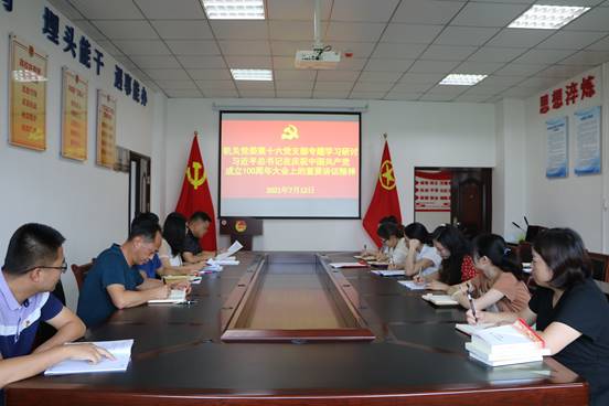 7月12日下午,机关党委第十六党支部召开党员大会暨集中学习会,专题学习研讨习近平总书记在庆祝中国共产党成立100周年大会上的重要讲话精神。支部党员、入党积极分子参加学习。会议由支部书记左红主持。