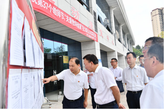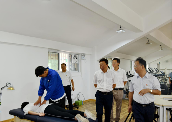 9月16日上午,省委党史学习教育第十八巡回指导组副组长郭万才一行莅临我校,通过看展板、走访办实事现场、查阅材料、听取汇报等形式对我校党史学习教育“我为群众办实事”实践活动开展情况进行督导,并深入体育学院、第一临床学院等二级院系实地查看“我为群众办实事”实践活动。学校党委副书记、党史学习教育领导小组办公室主任蔡善君,党委委员、宣传部长、党史学习教育领导小组办公室副主任李均陪同。