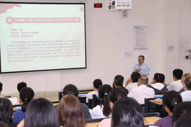 李均部长以《感悟伟大历史成就、弘扬伟大建党精神、担当伟大复兴使命》为题,从百年征程波澜壮阔、百年初心历久弥坚,赓续红色血脉、坚守立德树人,牢记殷切嘱托、践行使命担当三个方面进行了全面细致的讲授。让公共卫生学院的师生们深入领会伟大建党精神的深刻内涵和时代价值,明白了“九个必须”的精髓要义,在四个伟大成就、五个庄严宣告中感悟共产党人的初心使命,厚植爱国主义情怀。