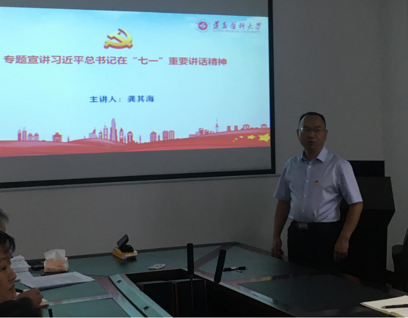 9月28日14点,学校党委委员、副校长龚其海在设备处会议室为机关党委第十三支部专题宣讲习近平总书记“七一”重要讲话精神。