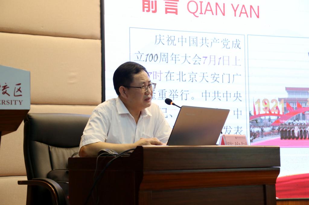 9月7日下午3点,我校珠海校区在综合楼一楼学术报告厅举办党史学习教育和“牢记殷切嘱托、忠诚干净担当、喜迎建党百年”专题教育报告会,本次报告会由珠海市委讲师团成员、我校珠海校区马克思主义学院院长陈俊钊同志主讲。我校珠海校区领导刘代顺、周晓东、向国惠、许光阳出席报告会,我校珠海校区副科级以上干部、思政课教师、辅导员以及学生代表到场聆听。报告会由我校珠海校区党委副书记周晓东主持。
