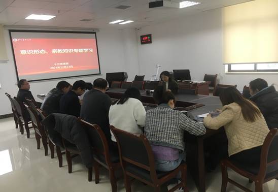 12月23日上午9:00,机关党委第十三党支部在学校行政楼设备处会议室召开党员大会暨系列专题学习会。学校党委委员、副校长龚其海以普通党员身份参加会议。会议由支部书记蒋熠主持。